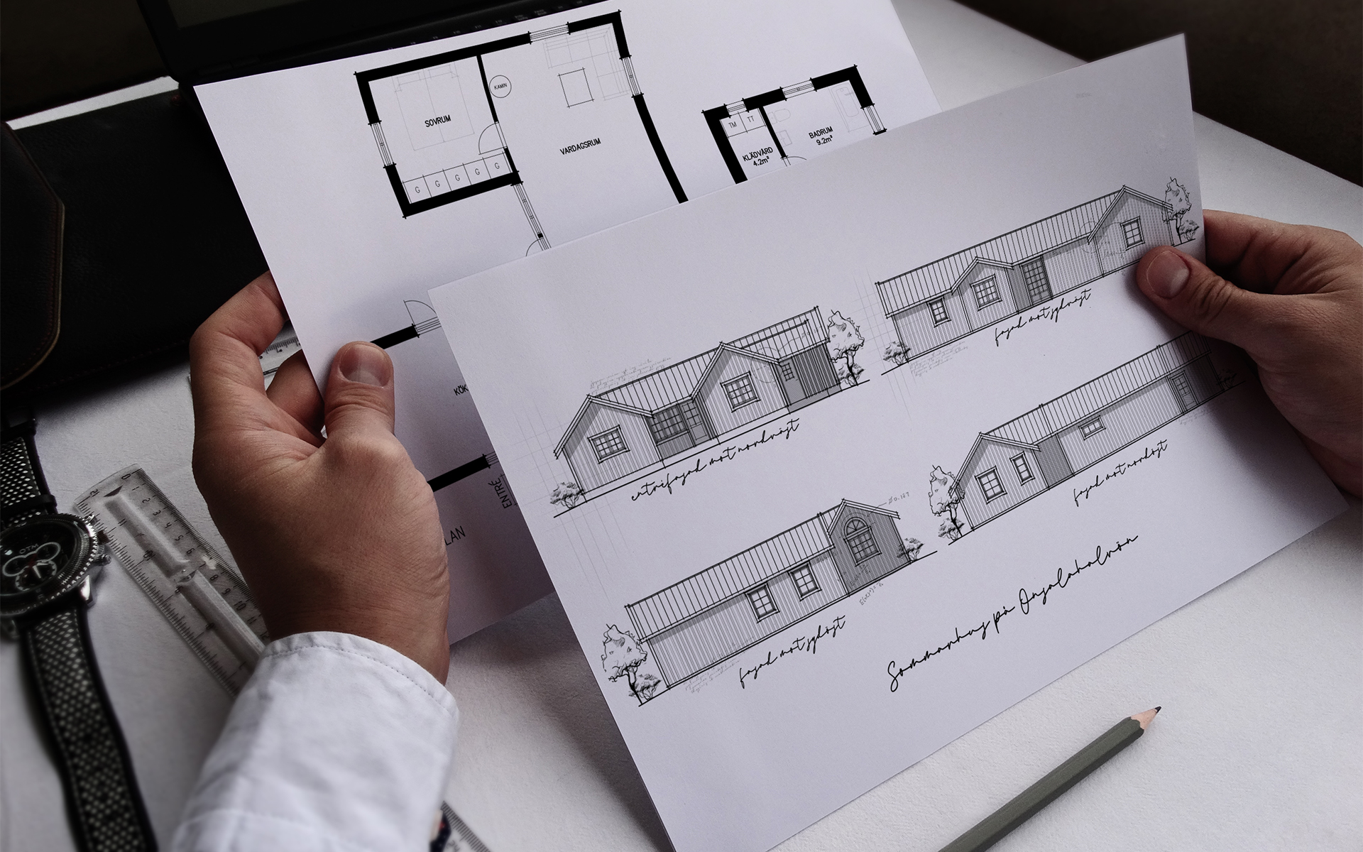 Den här sommarstugan hjälpte vi till att skapa ritningarna efter de önskemål kunden redan hade bestämt. Underlaget var några gamla ritningar, skisser på det nya och sedan gjorde vi en inmätning av hela huset och avslutade med fotografering från alla väderstreck så vi inte skulle missa något.